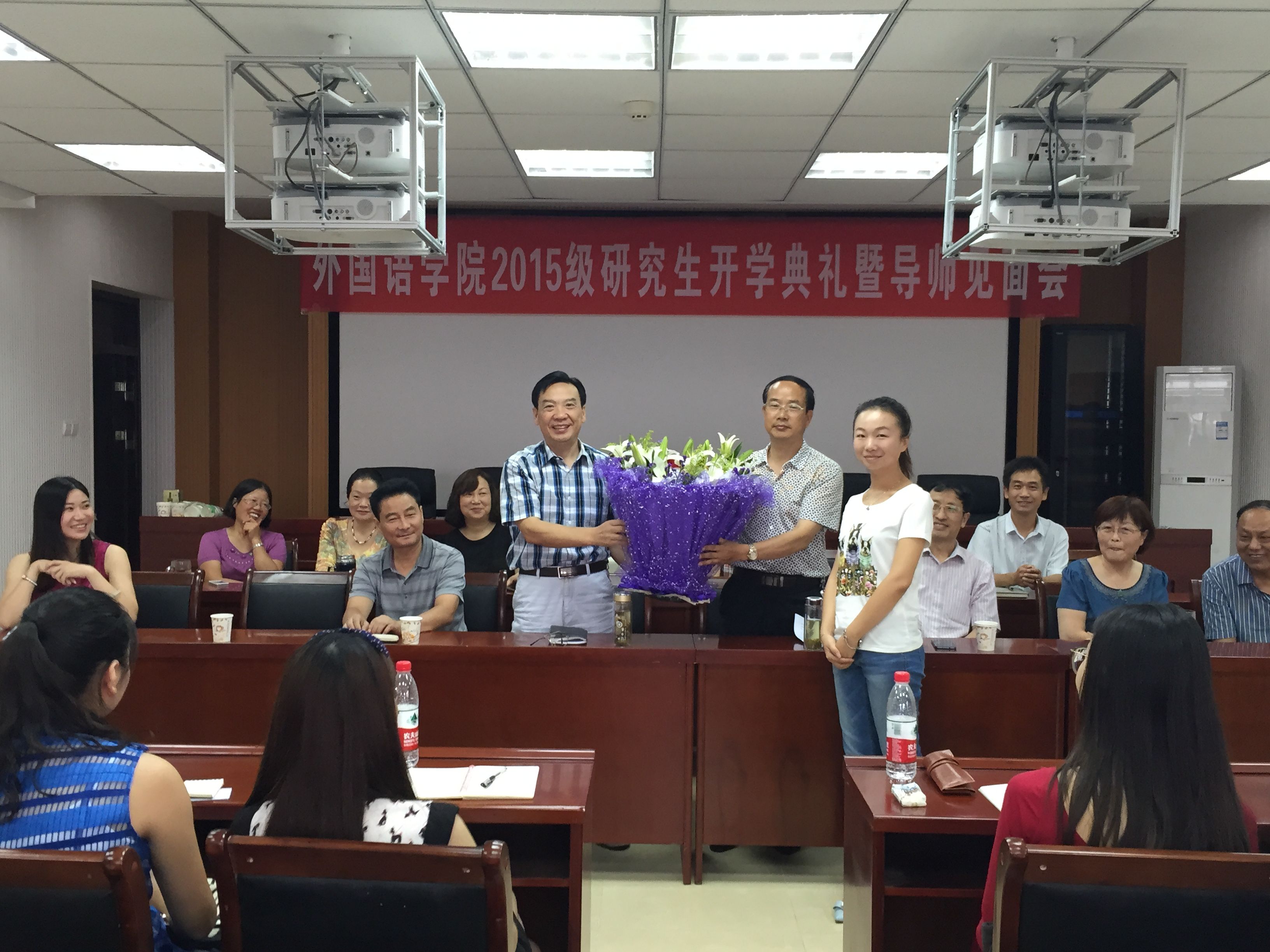 最后,刘世理发表热情洋溢的讲话,他代表学院全体师生向2015级研究生表示祝贺和欢迎,并对研究生新生入学教育及培养做出安排。他还给新同学提出了几点要求:一是要正确理解研究生这三个字,在研究生期间多读书,多沟通,提高研究生相互间的交流与研讨意识;二是要学会自主学习,多读书,带着问题多与导师交流、沟通,不断提高专业水平;三是在学习中,要心态平常,心境平静以及态度平和;四是做人、做事与做学问相结合,快乐学习,认真做事。适逢教师节,在会上,研究生代表还向学院全体老师表达节日祝福。