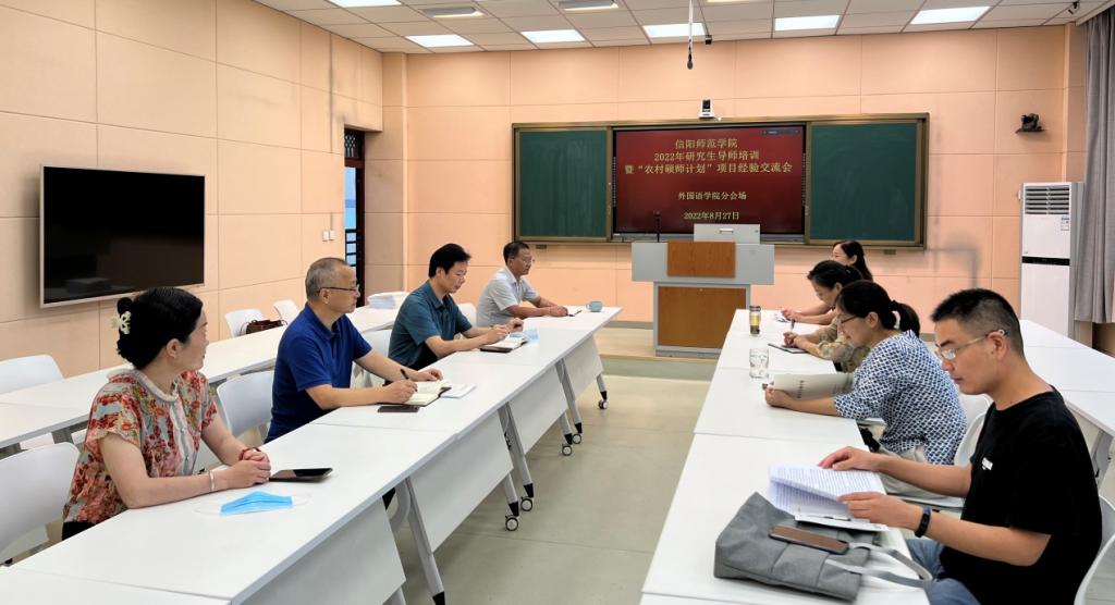 为进一步加强公司研究生导师队伍建设,提高研究生导师指导水平,世界足球官网以信阳师范学院2022年研究生导师培训暨“农村硕师计划”项目经验交流会为依托,于8月27日上午,在人文楼603室召开了研究生导师培训研讨会。会议采取线上线下相结合的方式进行。经理蔡满园、副经理吴向东、余永锋及全体硕士生导师参加会议。会议由副经理吴向东主持。