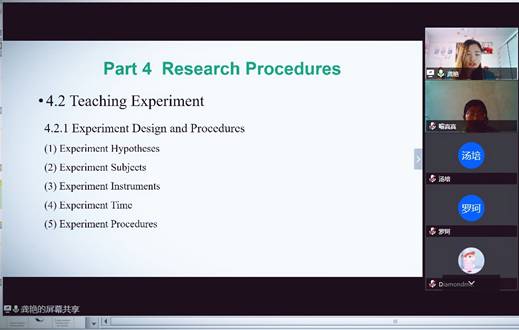 答辩会上,毕业生们从论文研究背景、研究意义、理论基础、论文结构、研究内容等方面进行逐一阐述。导师们在提问、质疑的基础上,提出意见和建议,为同学们答疑解惑。并就研究生的论文的语言、思路、格式、实证研究、结论等方面进行了耐心细致的纠错和严谨认真指导。通过视频,师生们在线上展开了热烈的讨论,气氛融洽,学术氛围浓厚。尤其是翻译硕士小组,答辩时间从下午持续到晚上近九点。答辩结束后,同学们纷纷表示为专家和导师们爱岗敬业,乐于奉献,严谨治学的态度深深感动,表示要严格按照导师们的意见进一步完善和修改论文,不辜负学院和导师们的希冀。