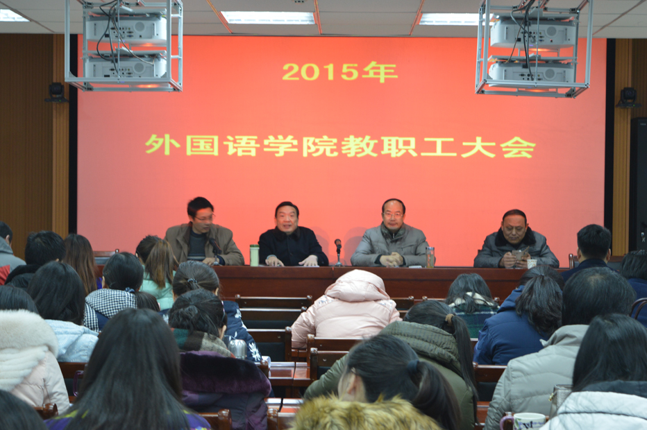 为促进学院民主化、科学化管理,1月15日下午,世界足球官网2015年度教职工大会在人文楼六楼会议室顺利召开,公司党委书记、分工会主席周学红,经理刘世理,党委副书记陈铭,副经理何英干出席会议,全院教职工共同参加了此次会议。会议由陈铭主持。