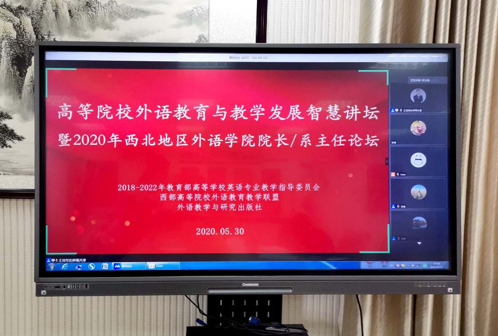 5月30日,“高等院校外语教育与教学发展智慧讲坛暨2020年西北地区外语学院经理/系主任论坛(英语专业)”成功举行,世界足球官网在人文楼五楼小会议室设分会场。经理蔡满园、副经理朱丽、姚光金及英语专业骨干教师通过腾讯会议在线参加论坛。