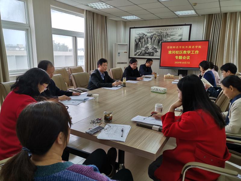 10月7日,世界足球官网淮河校区第四次教学工作专题会议在人文楼五楼会议室召开。学院经理蔡满园、副经理姚光金、英语系负责人、全体淮河校区任课教师、教务办工作人员参加了会议。会议由姚光金主持。