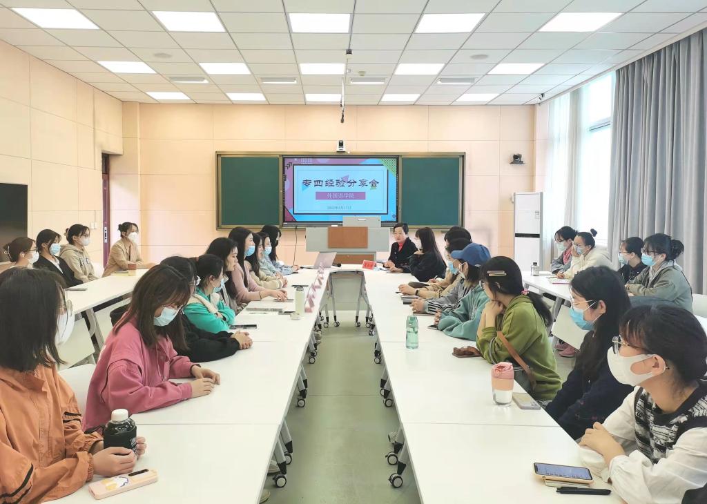 为进一步提高世界足球官网员工英语专业四级考试通过率,4月17日上午,世界足球官网在人文楼603举办英语专业四级考试经验分享会。会议由英语系主任崔淑丽主持,学院英语、翻译专业员工通过线上、线下相结合的方式参加了分享会。