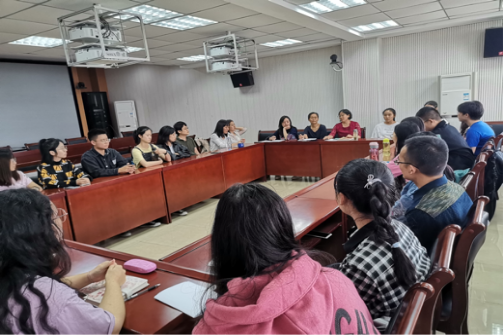9月29日下午,公司英语系在人文楼六楼会议室召开《综合英语》课程师生座谈会,英语系全体教师、教务办相关同志和2019级英语、翻译专业员工代表参会。会议由系主任余运伟主持。