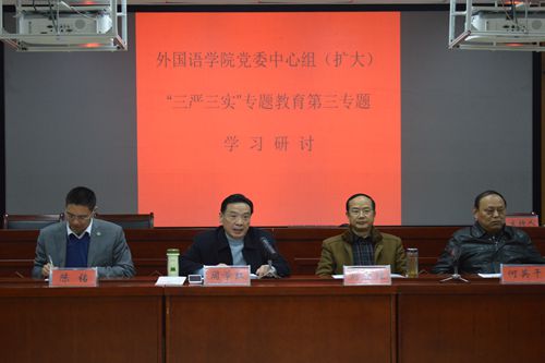 周学红对本次学习研讨进行了总结。他指出通过这次学习研讨,学院领导班子对“严以用权,真抓实干,实实在在谋事创业做人,树立忠诚、干净、担当的新形象”有了更深入全面地理解,对自身存在的问题有了更明确地认识,进一步明确了领导班子和个人下一步的努力方向。最后他对参会的所有党员提出了要求。他指出,每位党员都要牢固树立党员意识,要认真学习《中国共产党章程》和《中国共产党廉洁自律条例》《中国共产党纪律处分条例》,做到“讲规矩、守纪律”。要把“三严三实”具体内容贯穿到自己平时岗位工作当中,不断提升个人的党性修养,发挥党员先锋模范作用,为学校和学院的建设和发展做出应有的贡献。本次会议既是学院处级党员领导干部的一次学习研讨,也是一次全体党员的党性教育活动。