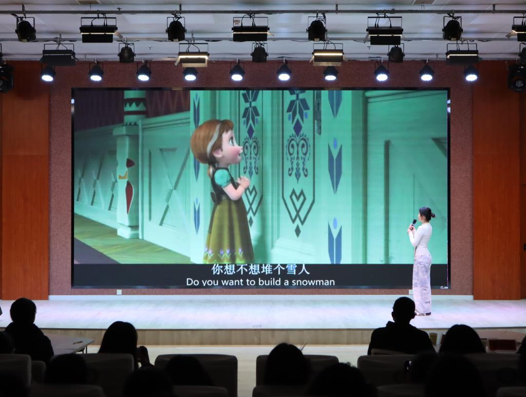 晋级决赛的10组选手选取经典英文电影和动画片段进行配音。他们以流畅的口语、富有情感的表达以及此起彼伏的音调,将角色的性格特征和情绪情感展现得淋漓尽致,为现场观众带来一场“声”入人心的视听盛宴。选手们标准的发音、富有感染力的表达以及对角色情感恰如其分的把握,赢得台下观众阵阵掌声。经过激烈角逐,王馨婕的作品《冰雪奇缘》荣获一等奖,姚梦洋等的作品《寻梦环游记》、朱灵的作品《白雪公主》、牛艺萌的作品《后妈茶话会》荣获二等奖,李姿的作品《疯狂动物城》、李冰琪等的作品《魔发奇缘》、马昱溶的作品《魔法满屋》、贺舒畅的作品《Never be Ashamed of Trying》、李渝茹的作品《小马宝莉》、狄鑫的作品《飞屋环游记》荣获三等奖。