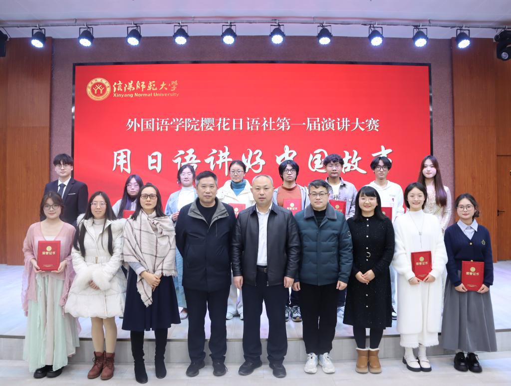 经过初赛选拔,共有9名选手晋级决赛。参赛选手深入挖掘中国文化内涵,将中国的传统、风景、历史、人文等元素融入演讲内容,从影视动漫、产业发展、科学成就、传统文化等方面生动讲述中国故事,展现中国形象。选手们抑扬顿挫的语调、专注的神情、丰富的内容尽显青春风采,台下观众掌声不断。经过激烈角逐,冀仕倬荣获一等奖,杜超亚、刘佳、张恩宏荣获二等奖,薛佳乐、任鑫钰、段文淼、夏雨涵、张芳荣获三等奖。与会领导老师为获奖选手颁发获奖证书并合影留念。