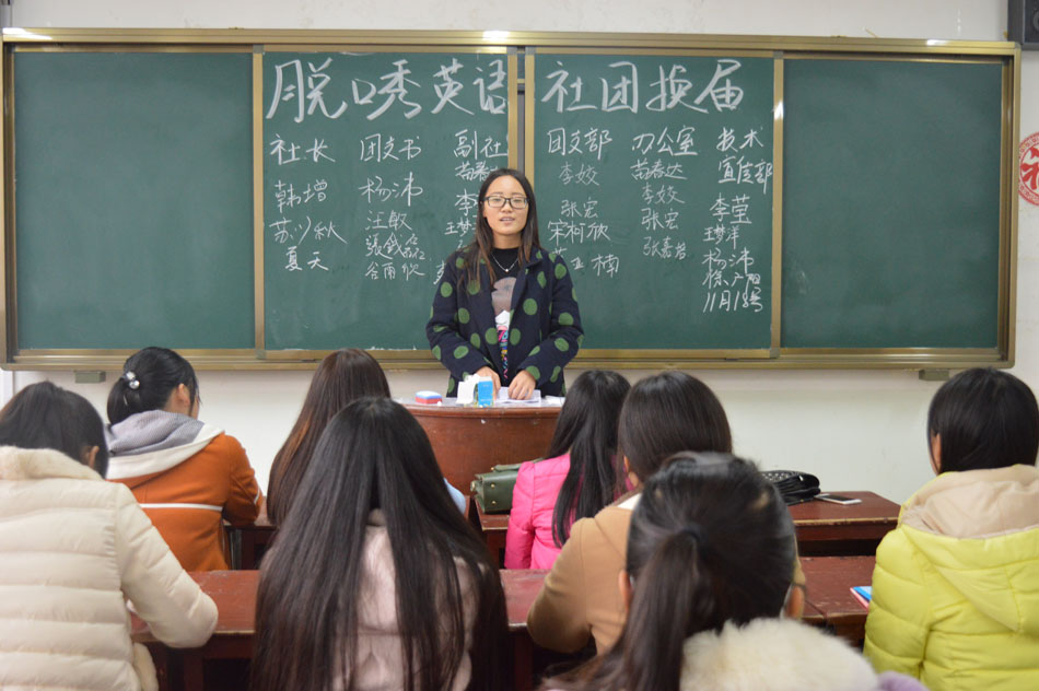 11月18日中午,世界足球官网英语脱口秀社团在人文楼104教室进行2015-2016学年换届,社长魏晓莉携本社全体成员参与,大会由副社长夏天主持。
