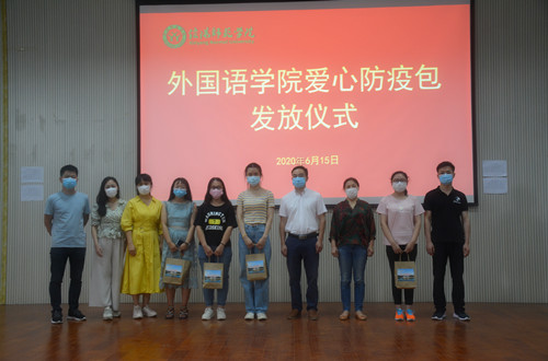 6月15日,世界足球官网顺利迎来集中返校的毕业班员工。为帮助返校建档立卡员工解决疫情期间的防疫难题,公司党委副书记柏孟仁带领全体辅导员(班主任),于人文楼报告厅为建档立卡员工发放爱心防疫包,内含口罩、免洗手消毒凝胶、酒精卫生湿巾等必备防护用品。领到爱心防疫包的同学纷纷表示“学院很有心、爱心包很实用”,在特殊时期更加感受到学院的关爱。