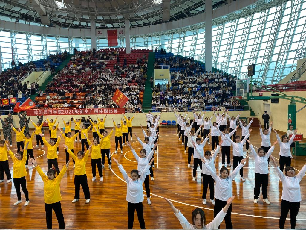 11月29日下午,信阳师范学院2020级新生广播体操比赛于体育馆拉开帷幕。