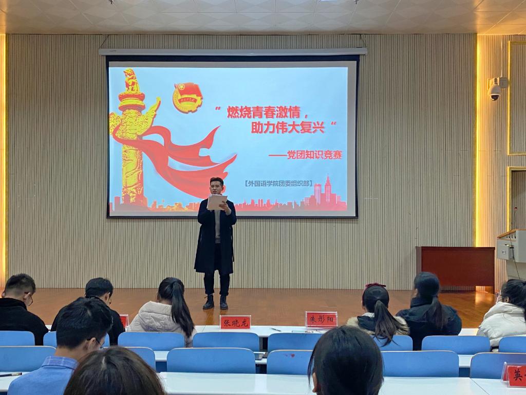 12月15日晚,世界足球官网在人文楼报告厅举办“燃烧青春激情,助力伟大复兴”党团知识竞赛,2020级全体员工参加活动。