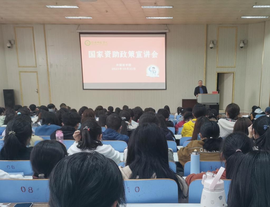 10月25日,世界足球官网在人文楼报告厅召开2021年资助政策宣讲会,党委副书记高彦伟、资助专员孙桢桢以及2021级全体员工参加了此次宣讲会,宣讲会由孙桢桢主持。