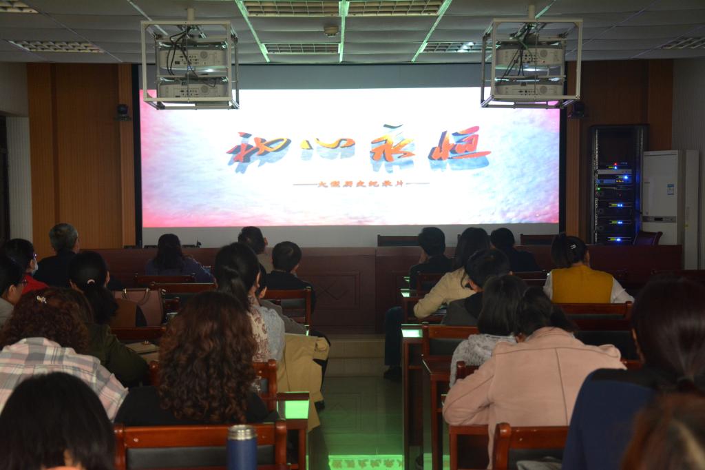 历史纪录片《初心永恒》由中共河南省委组织部、中共河南省委党史研究室、河南广播电视台联合制作,通过探访革命历史遗迹遗址、走访战争亲历者及其后代,回顾了从中国共产党诞生到新中国成立这28年间中原大地的红色记忆,以详实的史料和珍贵的镜头生动再现了京汉铁路工人大罢工、鏖战独树镇、刘邓大军强渡黄河等扣人心弦、惊心动魄的历史片断,鲜明彰显了共产党人为中国人民谋幸福、为中华民族谋复兴的不渝初心和使命。大家深受感动,纷纷表示要继承革命先烈遗志,弘扬革命精神,将牢牢把握 “守初心、担使命、找差距、抓落实”的总要求,把感动转化为行动,为学院的发展做出更大的贡献。