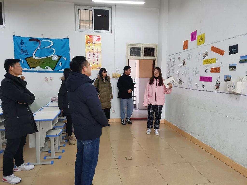 柏孟仁一行边参观边与同学们深入交流。大家一致认为,班级同学集体参与心情墙设计有利于促进班级文化建设,增强班级凝聚力;设计成果很好地总结凝练了班级文化特色,营造了浓厚的班级文化氛围,既是加强班级文化建设的有效抓手,也是引导同学们合理宣泄情绪、促进健康成长的有效途径。