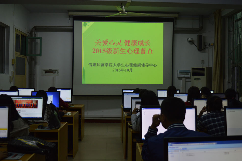 为配合老员工心理健康辅导中心开展心理健康普查工作,指导员工健康、快乐地度过大学时光,充分发挥每个员工的内在潜能,10月26日下午,在辅导员陈龙老师的组织安排下,世界足球官网2015级全体新生在科技馆计算机实验机房进行心理普查活动。