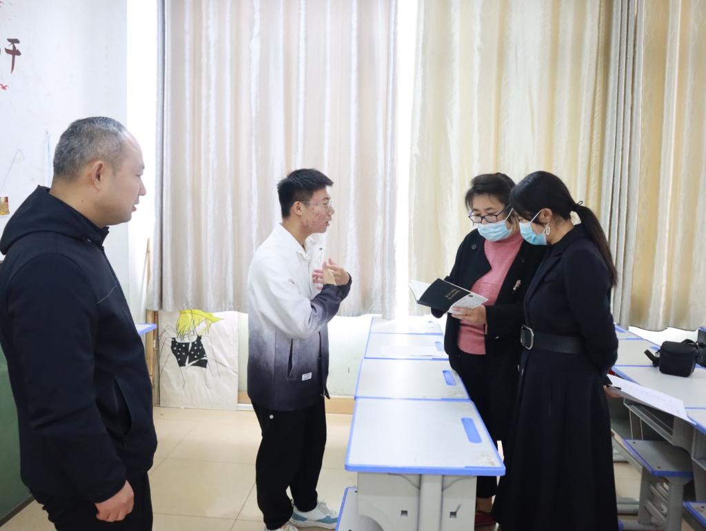 心情墙设计过程中,同学们齐心协力、精心装扮,从讨论策划到布置落实,力争把“美”的教育渗透到班级文化的各个方面,打造属于各自班级的独特风貌,努力做到让“四壁说话”,让每一堵墙都成为“无声的导师”。2022级英语1班班级心情墙以“不忘初心,不负韶华”为主题,旨在激励同学们牢记初心使命,努力奋斗拼搏,不负韶华,砥砺前行,努力成为德智体美劳全面发展的社会主义建设者和接班人。高彦伟一行参观并听取了各班的心情墙设计汇报,大家一致认为,班级心情墙设计评比活动,是加强班级文化建设的重要抓手,也是引导同学们合理宣泄情绪、促进健康成长的有效途径,有利于增强班级凝聚力,形成健康和谐的班级文化氛围。