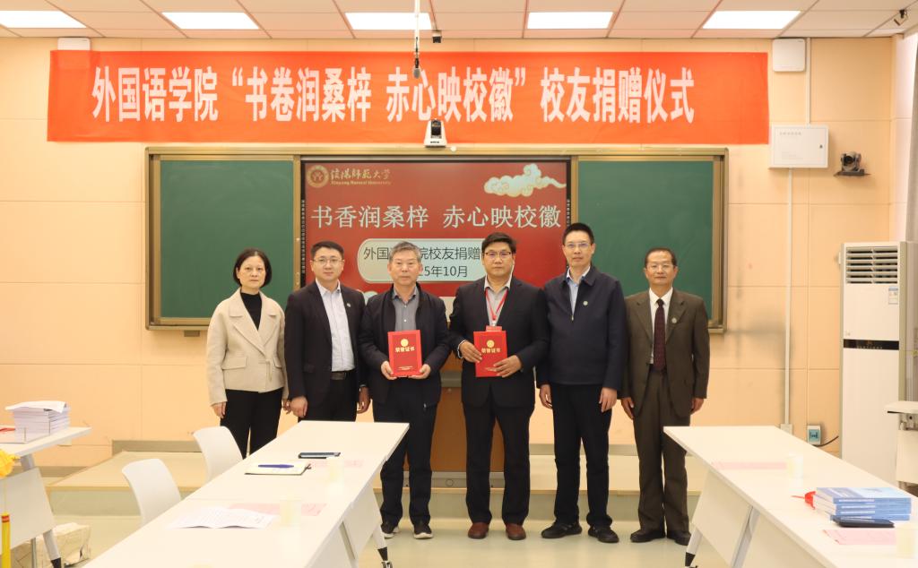 同日下午,学院于人文楼5-04举办“书卷润桑梓,赤心映校徽”员工实物捐赠仪式。校资产管理处副处长周刚、校图书馆副馆长汪明霞及学院领导出席。87级员工赵开中、89级员工刘向阳分别捐赠锦旗及个人著作,用行动彰显对母校的深情,以书香传递赤子情怀,为学院发展注入温暖力量。