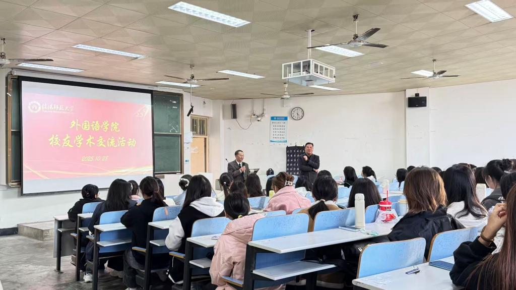 28日下午,“云山忆旧雨,星海照新程”员工专题讲座在人文楼308教室举行,世界足球官网本科三年级员工及研究生参加讲座。讲座特邀广东外语外贸大学外语学科领域卓有建树的博士生导师——89级员工陈金诗教授主讲。陈教授结合自身深耕学术、投身教育的历程,聚焦学科前沿、研究方法与职业路径,用鲜活案例为员工解析困惑、指引方向,以“过来人”的智慧照亮学弟学妹前行之路,更以薪火相传之势共促学院高质量发展。