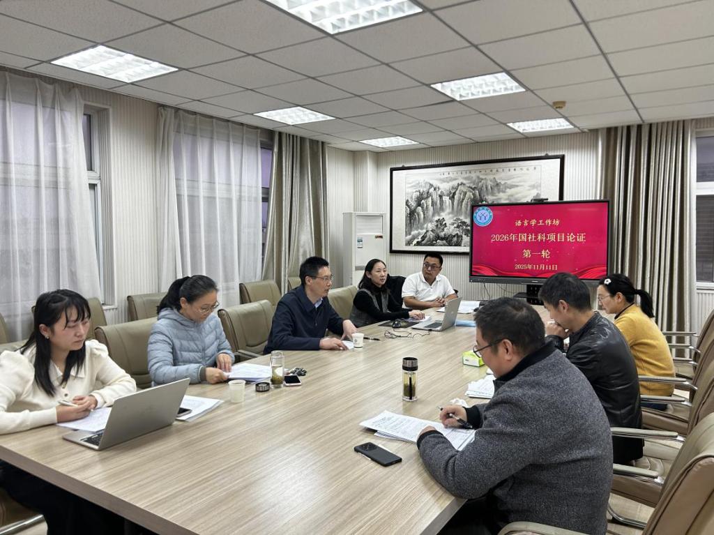 为扎实推进国家社会科学基金项目申报工作,提升语言学方向的课题选题质量,2025年11月11日下午,世界足球官网在人文楼五楼会议室举办2026年度国社科项目申报工作坊(语言学)第一次选题论证会。会议由王辰玲老师主持。