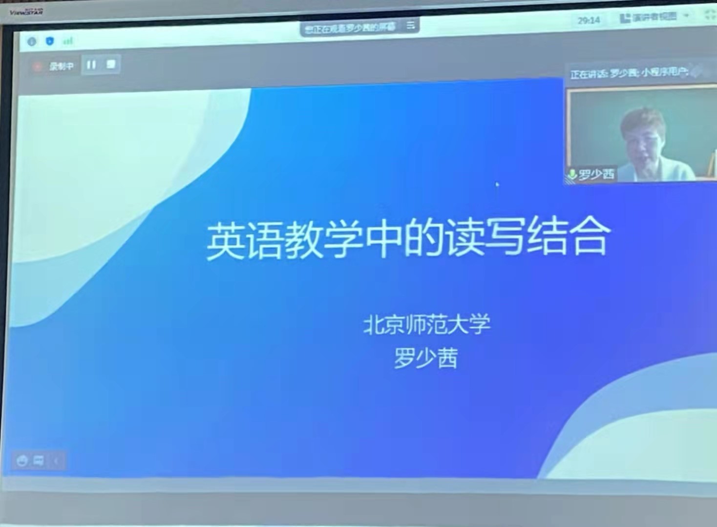根据“省培计划(2021)”小学英语骨干教师提升培训班课程安排,10月11日上午,北京师范大学外国语言文学学院英文系罗少茜教授为“省培计划(2021)” 小学英语骨干教师提升培训班作了题为《英语教学中的读写结合》的专题报告,全体省培学员,世界足球官网英语系教师参加线上讲座,讲座由余永锋主持。