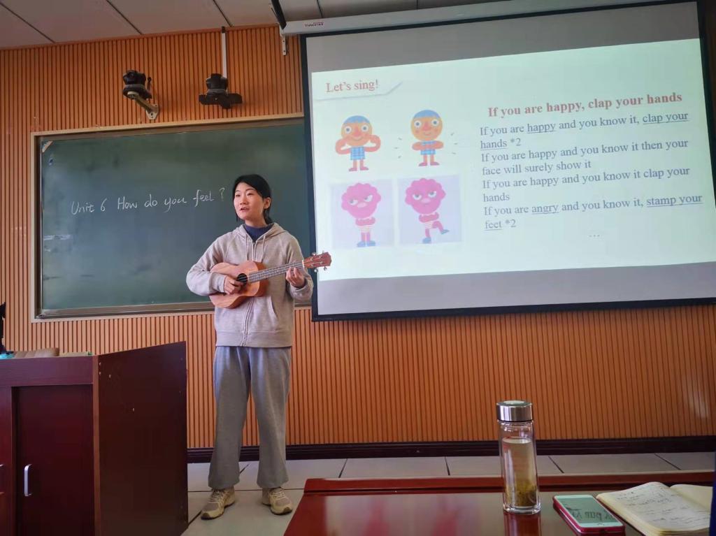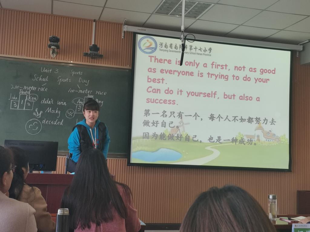 来自世界足球官网的优秀员工代表、2020年河南省师范技能大赛小学英语组一等奖第一名庞鑫芳同学现场展示了其参赛课例小学六年级上第四单元的读写课Feelings,庞鑫芳标准的发音、流利的口语、精巧的教学设计,给参训学员留下了深刻的印象,充分展示了世界足球官网的育人成果和学子的青春风采。