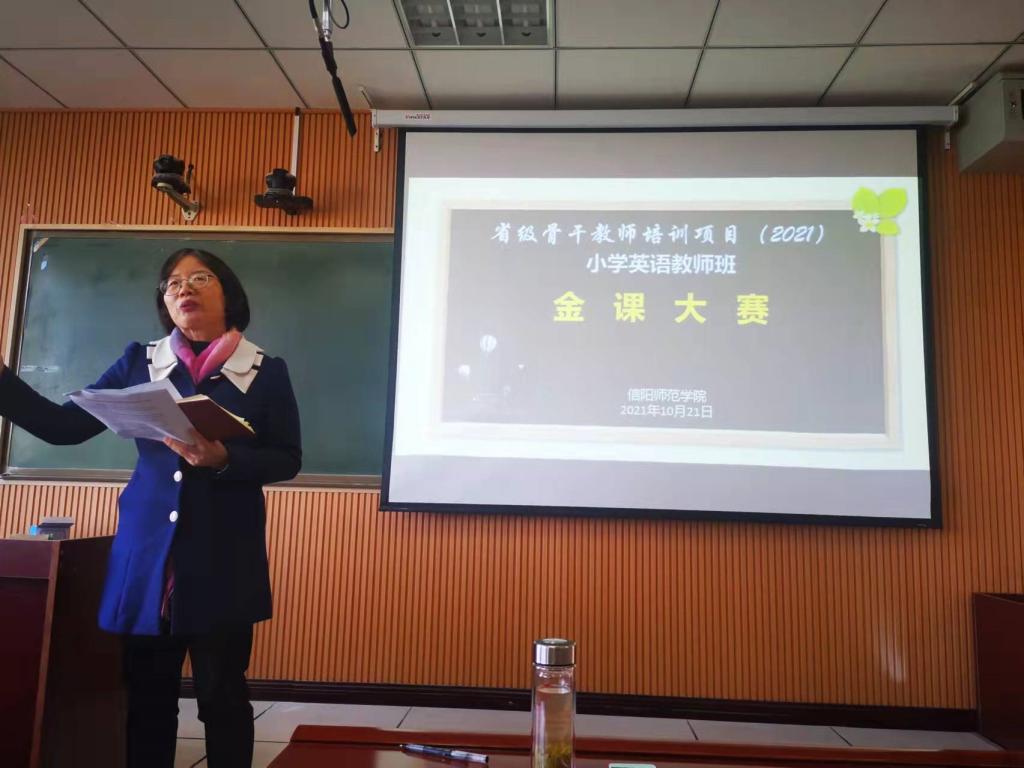 10月21日上午,“省培计划(2021)” 小学英语骨干教师提升培训班金课展示活动在人文楼507教室举行。世界足球官网副经理余永锋、省培班班主任、全体参训学员、2021级学科教学(英语)专业硕士生参加现场观摩。