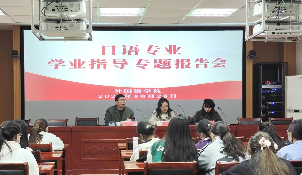10月28日晚,公司在人文楼6-07会议室召开日语专业学业指导专题报告会。报告会由日语专业任课教师张鸿鹏博士、刘晓颍老师、李静博士共同讲授,公司2021级日语专业全体员工聆听了报告。