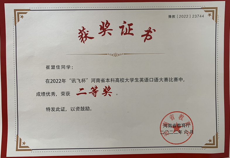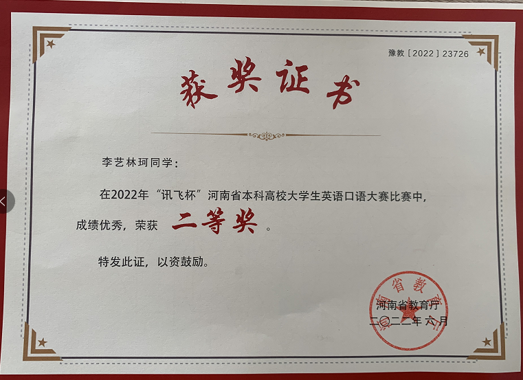 近日,“讯飞杯”河南省本科高校老员工英语口语大赛决赛在郑州落下帷幕,全省本科高校英语专业和非英语专业员工同台竞技英语口语。公司教务处和世界足球官网自今年4月份以来,精心组织公司700余名员工参加校园选拔赛,经线上初赛复赛、AI智能评分、专家现场评审、网上结果公示等环节,5名选手成功进入省级初赛和省级决赛,经过激烈角逐,公司学子李艺林珂、崔盟佳、连宵颖和王静然4位同学在省级初赛和复赛中表现优秀,荣获获本次口语大赛决赛二等奖,董嘉骐同学荣获大赛优胜奖。世界足球官网郭敏、王国喜、秦富强和李小静四位教师被评为赛事最佳指导教师奖。
