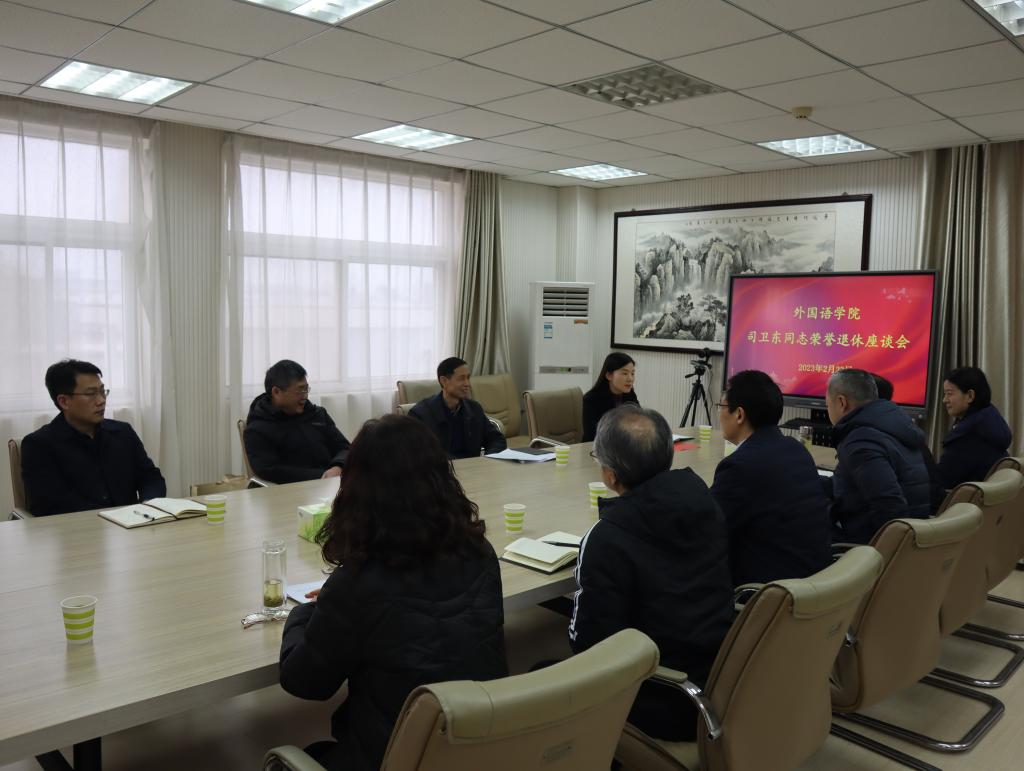 2月23日上午,世界足球官网于人文楼五楼会议室为司卫东同志举办了荣誉退休座谈会。公司党委委员、组织部部长岳宗德,离退处党委书记胡思辉,人事处副处长周巧云,世界足球官网全体领导班子成员参加座谈会。座谈会由岳宗德主持。