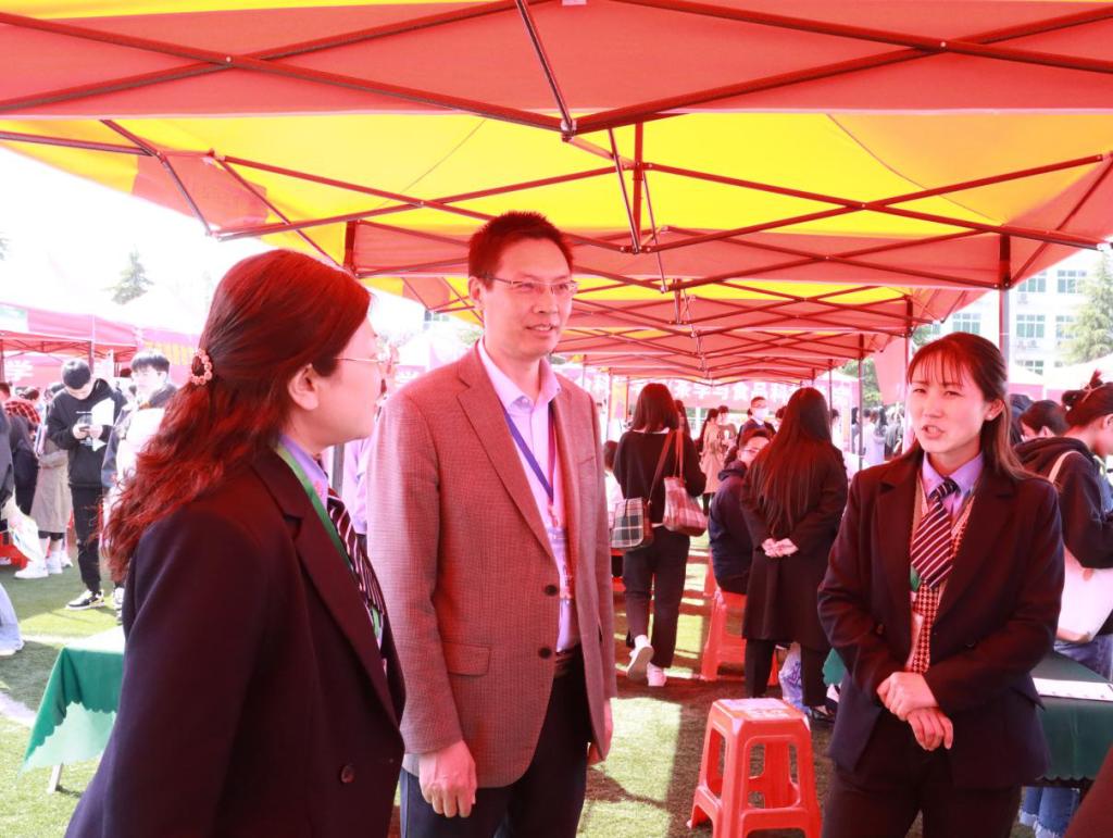 双选会现场气氛热烈,秩序井然。学院设置就业服务台,为招聘单位提供信息咨询、招聘信息登记等对接服务。招聘单位通过海报、宣传单等方式向毕业生介绍单位概况、岗位需求等情况。学院毕业生认真阅读招聘信息,积极与招聘沟通交流,询问有关工作内容、薪资待遇及职业前景等相关情况。双选会期间,公司党委书记陈铭、副书记高彦伟莅临招聘现场,与招聘单位深入交流,了解招聘需求与就业形势;与学院毕业生亲切交谈,为他们提供就业指导与服务。