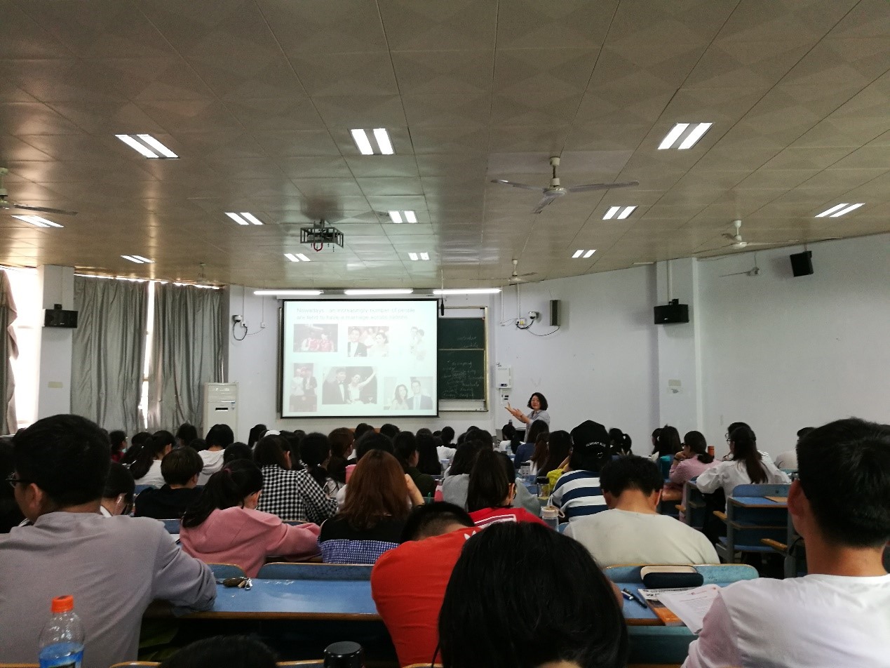 本节课讲授的是《新视野大学英语读写教程》第二册第三单元。以transnational marriage 入手,通过精心准备的ppt课件,刘晶老师向员工介绍了与课本内容相关的丰富的背景知识,进而引导员工就“the advantages and disadvantages of marriage across nations”展开了热烈的讨论。经过这些导入活动,刘晶老师又向员工介绍了一部与课文内容有着极为相似背景的英语经典电影Guess Who's Coming to Dinner。刘晶老师对电影的历史背景和内容做了详细的介绍和解说,这对员工更好地理解课文内容提供了很大的帮助。课上,刘晶老师精神饱满、仪态大方,她对对教学课程内容掌握娴熟,对问题的阐述简练准确、重点突出,这些都吸引了员工的注意力,很好地调动了员工们的学习热情,也使课堂气氛轻松活跃。课后,教研室的各位老师各抒己见,认真地评价了本次观摩活动,大家在肯定本节课的同时,也提出了一些良好的建议。