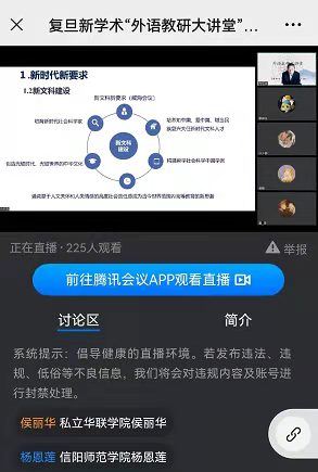 根据河南省本科高校“课堂教学质量提升年专项行动”启动会及公司专题会议精神, 公共外语教研室结合外语学院“课堂教学质量提升年专项行动”的有关精神,对公共外语教研室“课堂教学质量提升年专项行动”的相关工作进行再部署、再动员,2022年4月17日,公共外语教研室积极动员部分教师利用周末时间参加复旦新学术外语教研大讲堂学术活动,提高本科教学质量,本次授课安排如下: