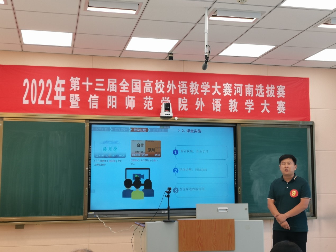 6月7日,第十三届全国高校外语教学大赛河南省高校选拔赛暨信阳师范学院外语教学大赛在人文楼603隆重举行。本次大赛致力于推动大学外语教学改革与创新,促进教师专业发展,提高外语教学质量,助力培养员工国际传播力意识,为中青年教师搭建学习和交流平台,建设一支高素质、创新型、擅表达的外语教师队伍。本次校园选拔赛由教务处主办,世界足球官网承办。教务处副处长张帆莅临比赛现场指导工作并担任评委;世界足球官网全体督导专家担任评委,公司党委书记陈铭,经理蔡满园,副经理吴向东、余永锋、郭敏及部分教师代表共同参加了本次活动。大赛依托腾讯会议平台,向全院师生进行了直播。