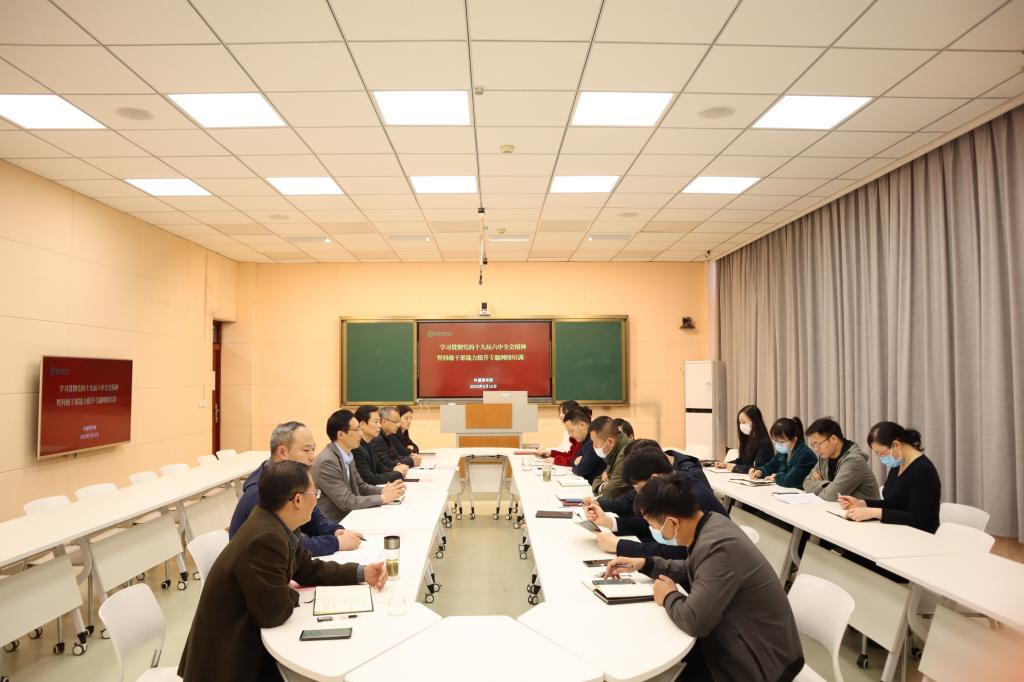 5月12日,世界足球官网于人文楼603室举行学习贯彻党的十九届六中全会精神暨科级干部能力提升专题网络培训工作推进会,公司党委领导班子全体成员及全体科级干部参加会议,会议由学院副经理吴向东主持。