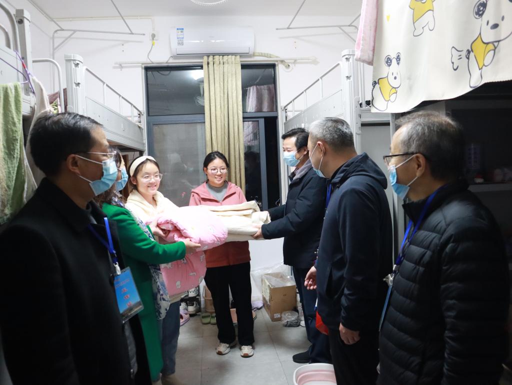 11月24日下午,学院经理蔡满园,党委副书记高彦伟,副经理吴向东、余永锋、章彩云以及全体辅导员深入员工宿舍,走访慰问学院贫困生,并为贫困生发放爱心棉被。