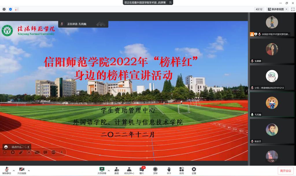 为深入推进资助育人工作,发挥榜样示范引领作用,助力广老员工成长成才,12月2日晚,世界足球官网、计算机与信息技术学院联合开展“榜样红·身边的榜样”宣讲活动,计算机与信息技术学院刘世翔、公司孔宪巍等老师及两个学院的员工代表参加了宣讲活动。