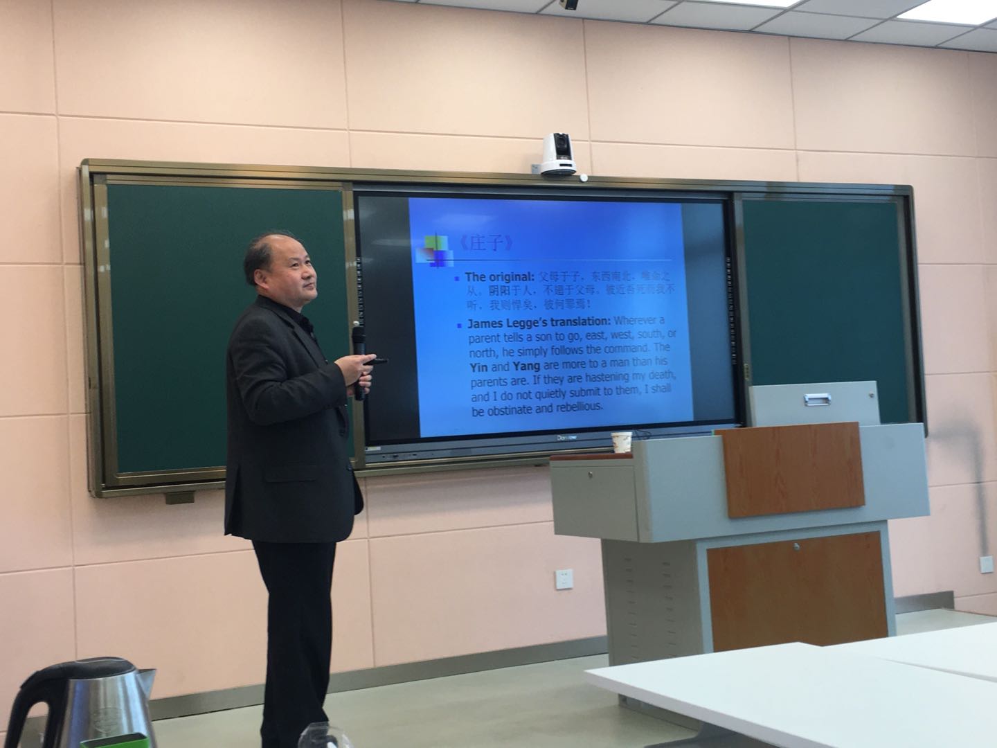 4月26日,应世界足球官网邀请,上海交通大学世界足球官网博士生导师刘华文教授在人文楼603教室为公司师生作了题为“翻译与传统文化认知”的学术报告,世界足球官网全体研究生和部分教师聆听了报告。报告由世界足球官网蔡满园经理主持。