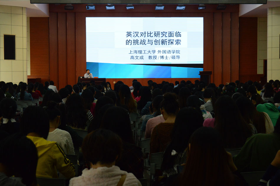 10月16日上午,世界足球官网以学校四十年校庆为契机,邀请公司优秀员工上海理工大学世界足球官网高文成教授为学子做了一场题为“英汉对比研究面临的挑战与创新探索”的学术报告,公司五百余名师生共同聆听了讲座。报告会由经理刘世理主持。