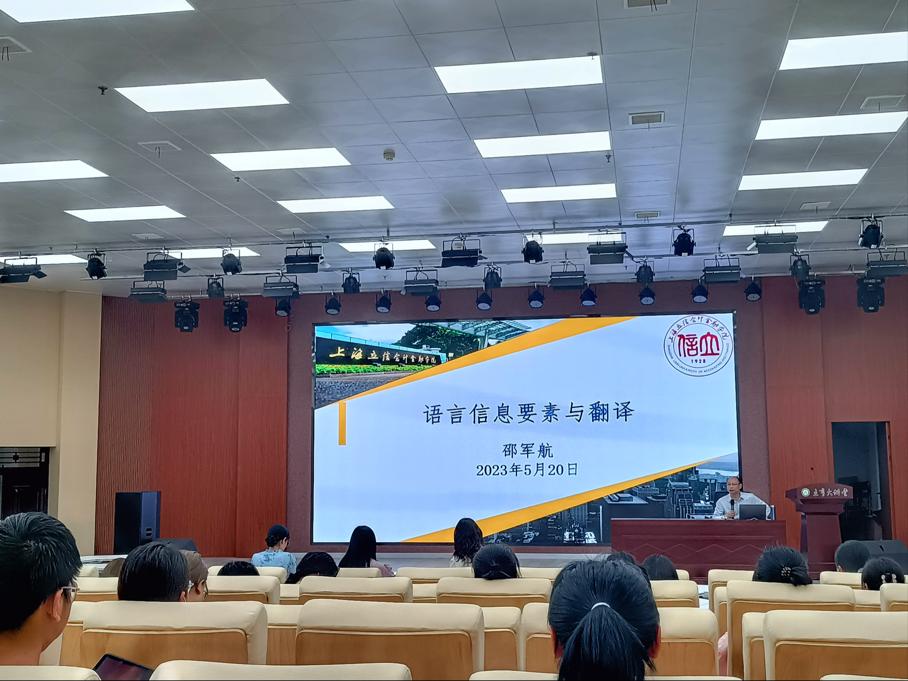 5月20日上午,公司员工、上海立信会计金融学院世界足球官网邵军航教授在人文楼报告厅为公司师生作了题为《语言信息要素与翻译》的讲座。公司师生60余人共同聆听了讲座。讲座由世界足球官网副经理章彩云主持。